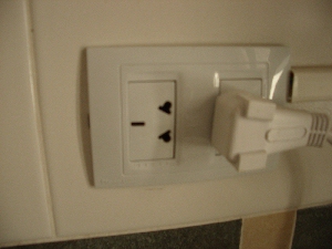 | 日本から持参した電気器具を使う場合、電圧とコンセントの形状が異なるので、注意を要します。 |